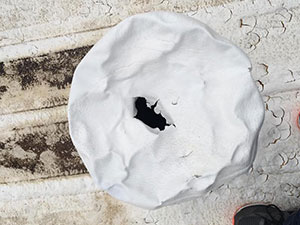 - Impact marks from wind-driven debris